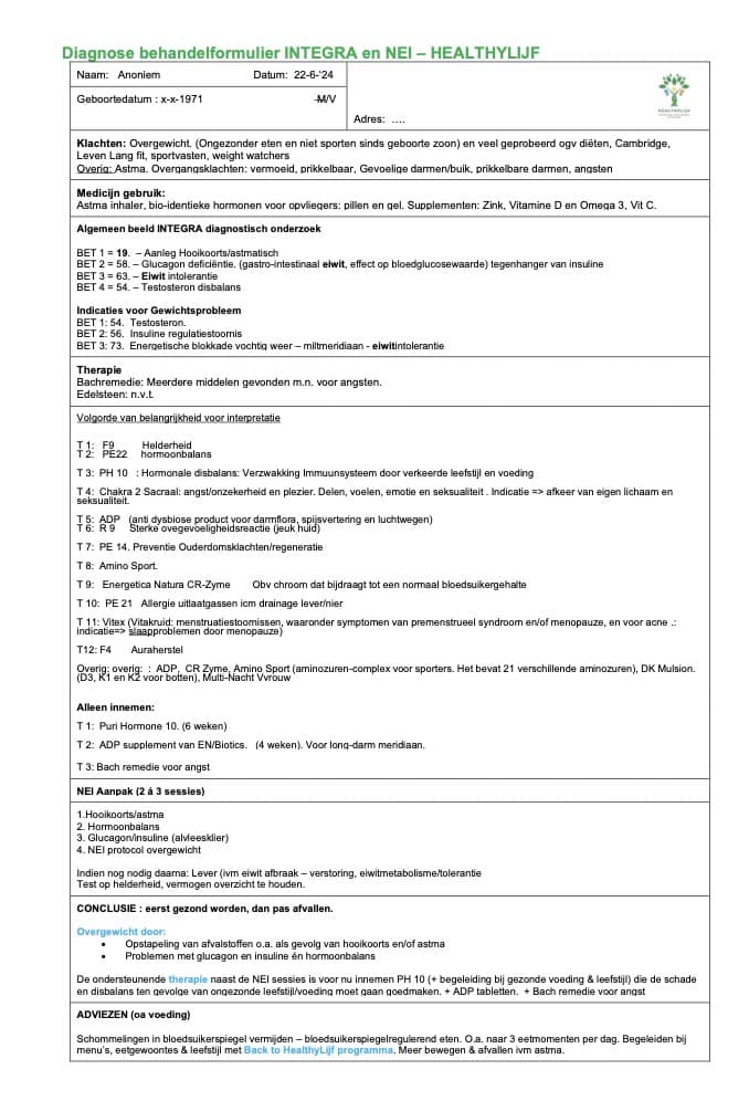 Met dit laatste stukje van de puzzel is het plaatje compleet en kan het behandelplan om aan je gezondheid en/of gewicht te werken besproken worden.